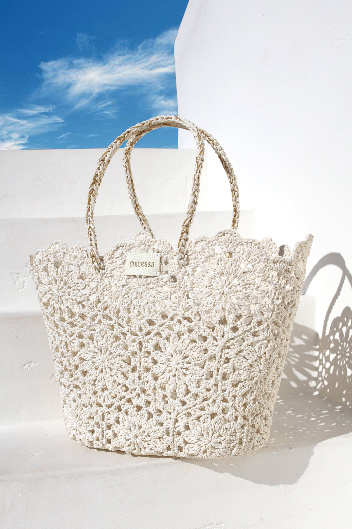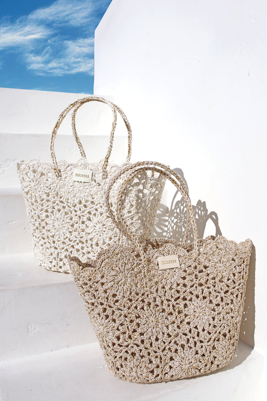 Hand-crocheted with sunlit detail, the Ivory Crochet beach bag blends artisanal texture with a subtle shimmer from woven lurex threads. Lightweight yet spacious, it’s designed to carry everything from sandy reads to sunset essentials with effortless ease. The open-knit construction lets light pass through, catching a soft glow that feels unmistakably resort-ready.